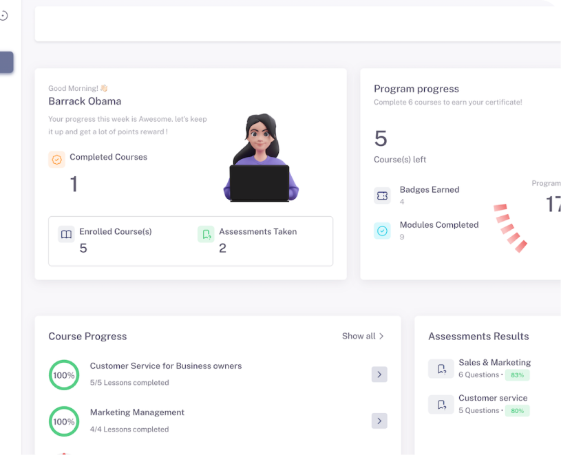 View your course progress, upcoming courses and achievements.